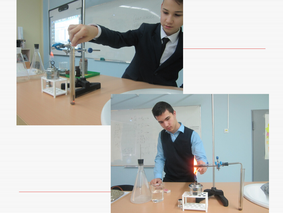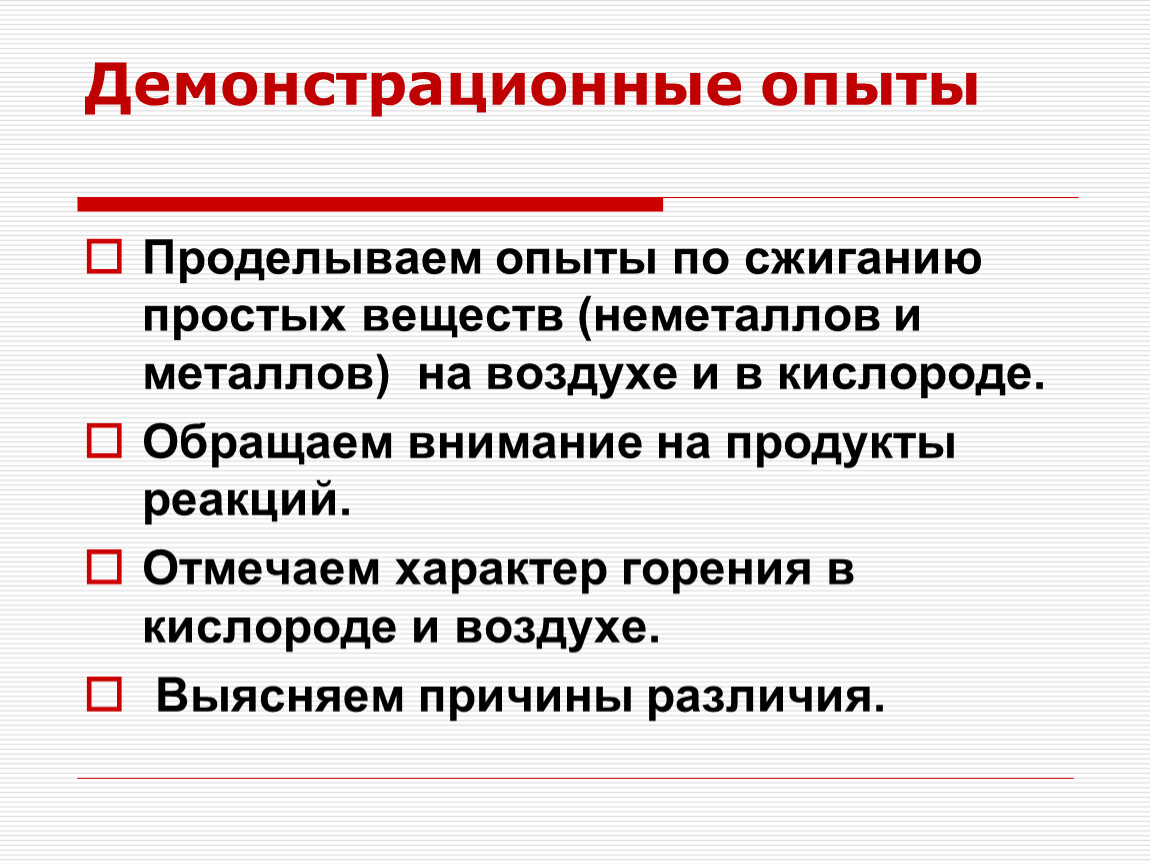 Проделываем опыты по сжиганию простых веществ (неметаллов и металлов) на воздухе и в кислороде.