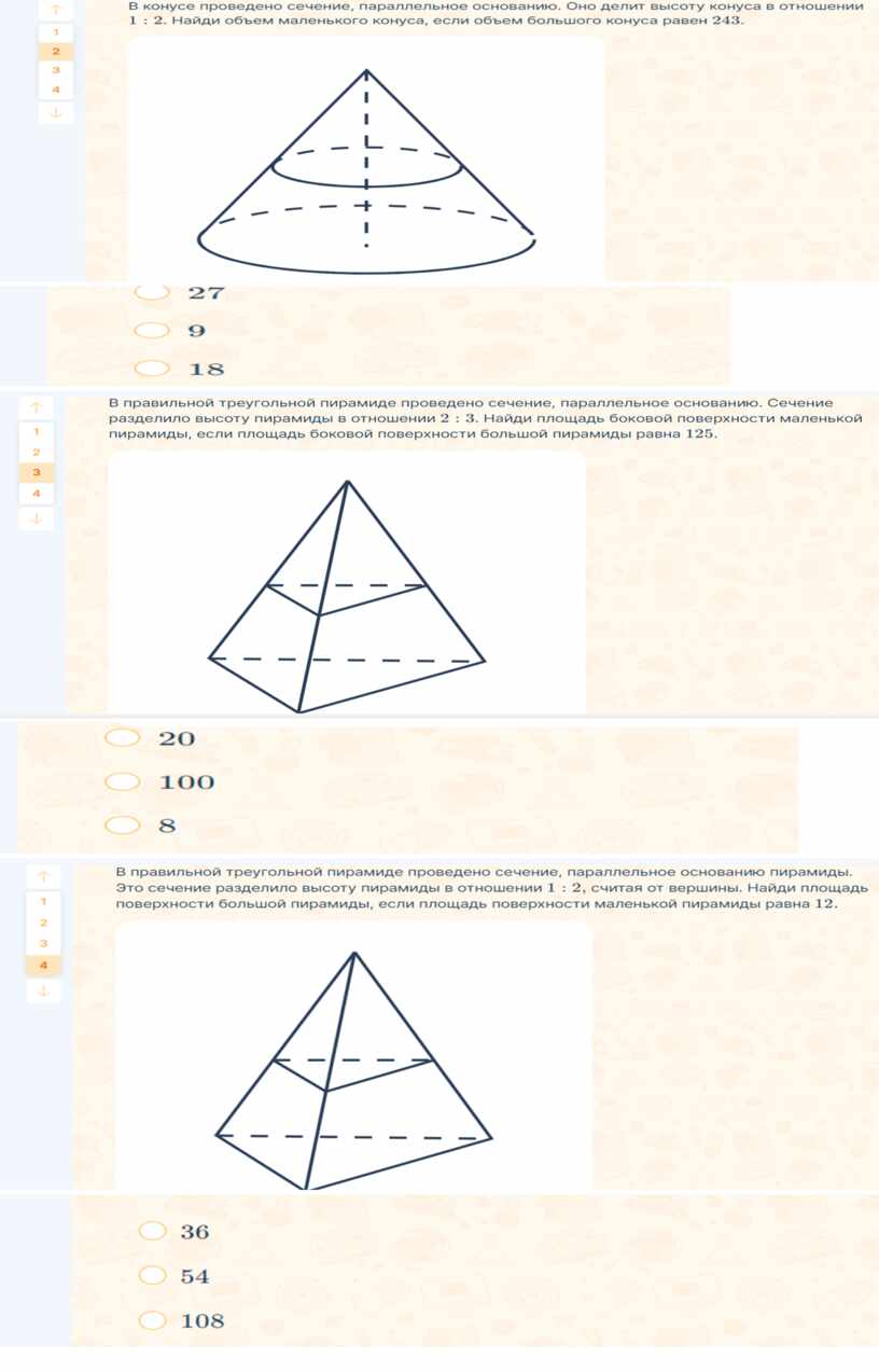 тела в пространстве. Соотношения между площадями поверхностей, объемами