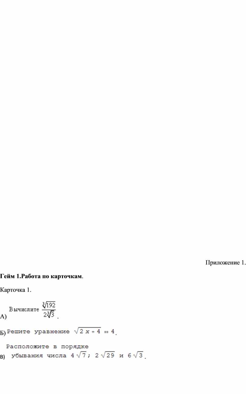 1. Работа по карточкам (по 2 человека от каждой команды) За каждое верное решение команды получают по 2 балла)