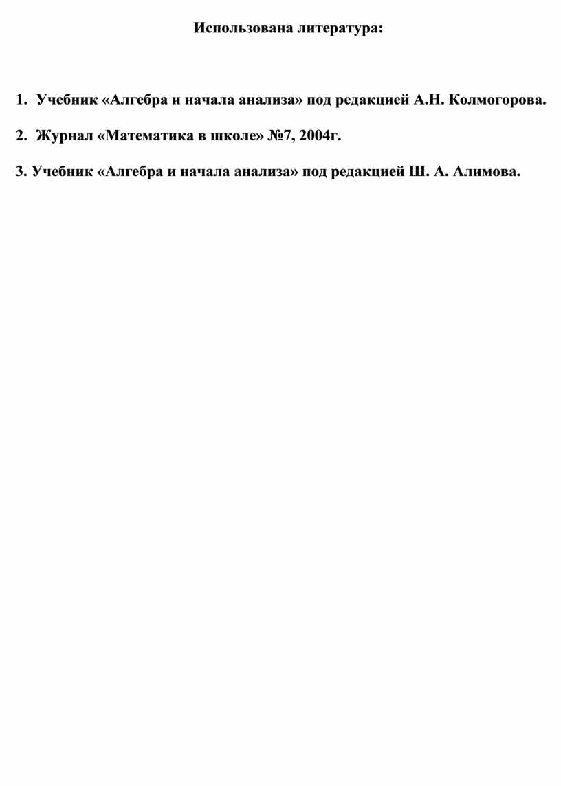 1. Учебник «Алгебра и начала анализа» под редакцией А.Н. Колмогорова.