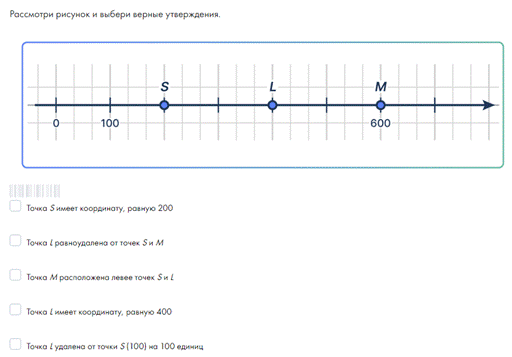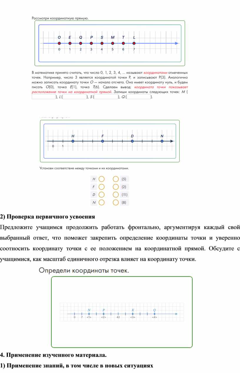 Предложите учащимся продолжить работать фронтально, аргументируя каждый свой выбранный ответ, что поможет закрепить определение координаты точки и уверенно соотносить координату точки с ее положением на координатной прямой. Обсудите с учащимися, как масштаб единичного отрезка влияет на координату точки.