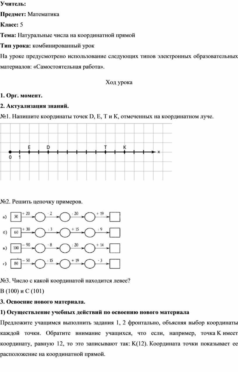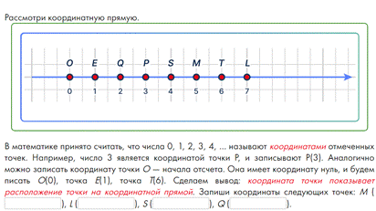 №1. Напишите координаты точек D, Е, Т и К, отмеченных на координатном луче.