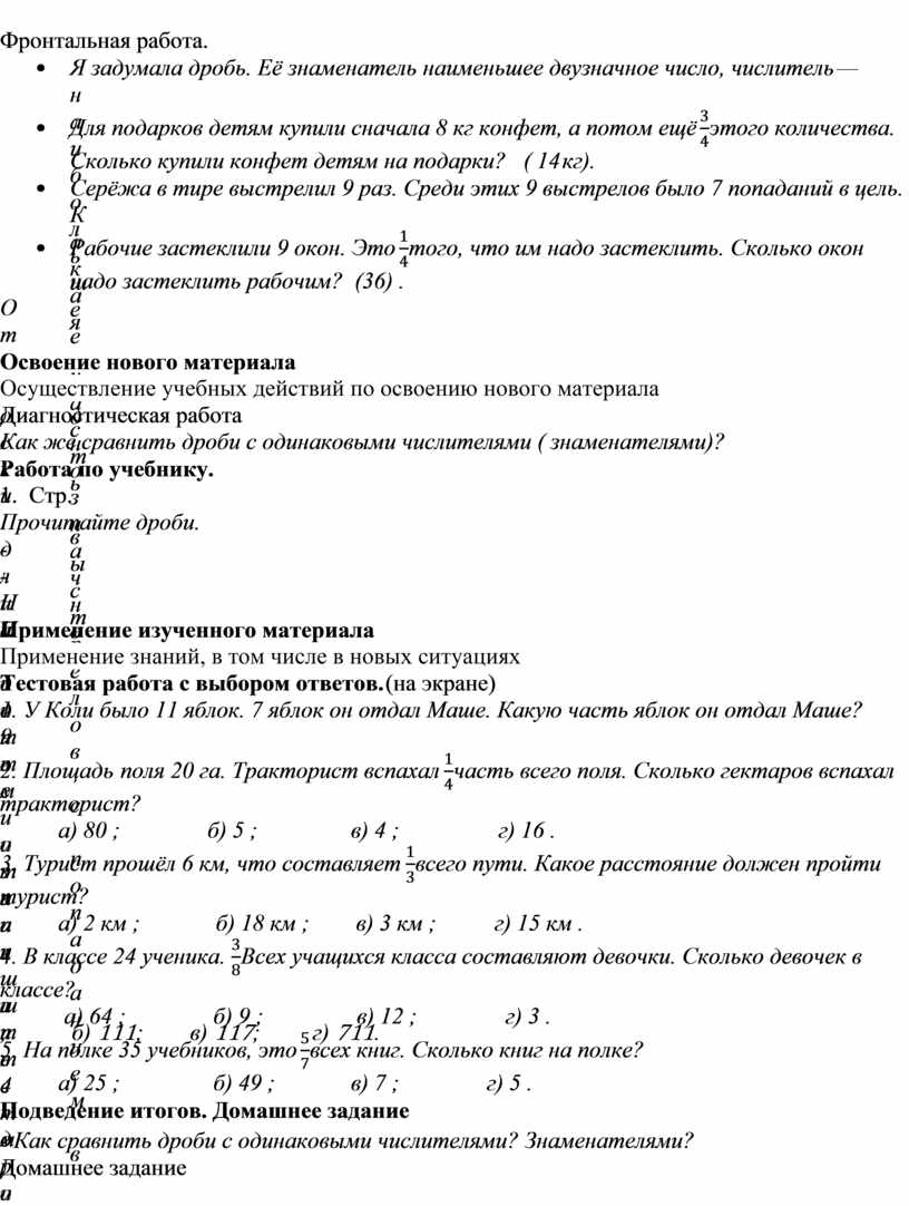 Краткая информация по урокуУрок по предмету «Математика» для 5 класса по теме «Сравнение дробей. Решение задач с практическим содержанием». Комбинированный урок. На уроке предусмотрено использование следующих типов электронных образовательных материалов: «Диагностическая работа».