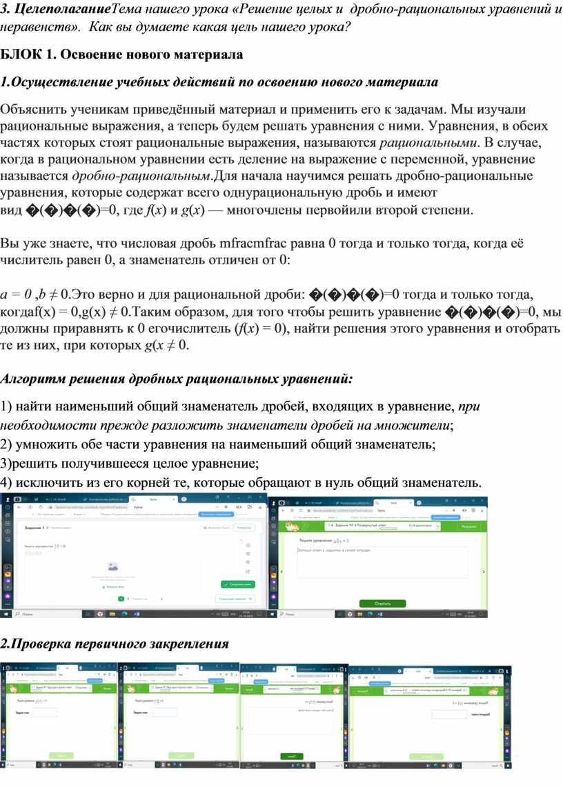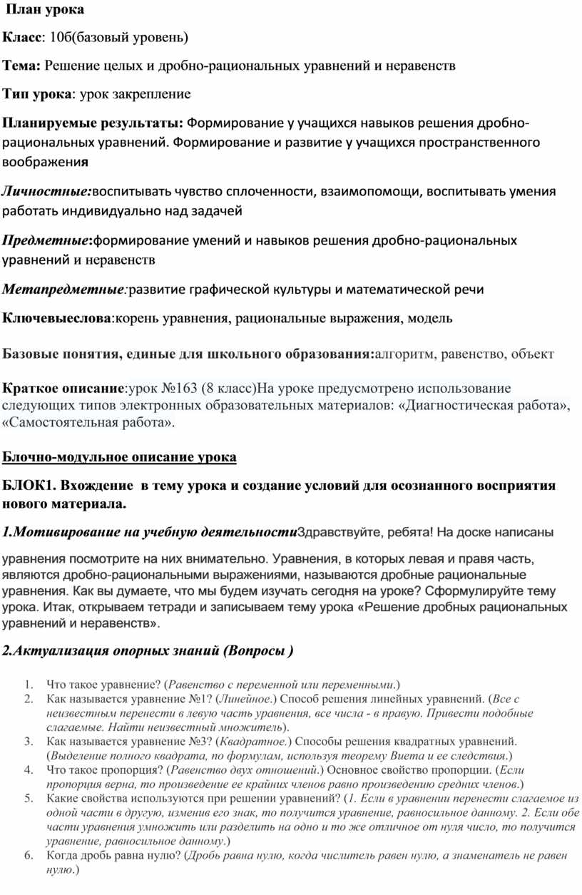 Тема: Решение целых и дробно-рациональных уравнений и неравенств