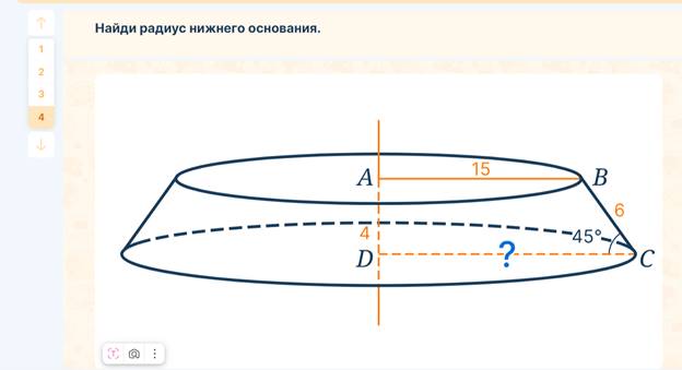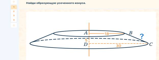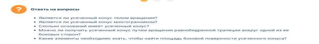 Предложите учащимся познакомиться с новой фигурой — усеченным конусом, а также с его элементами.