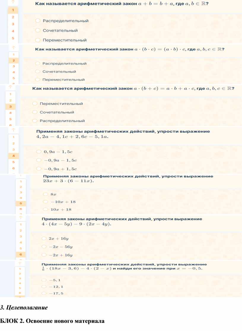 Предложите учащимся вспомнить названия законов арифметических действий и выполнить задание на их применение.
