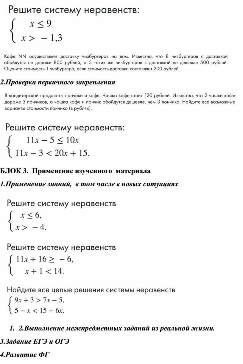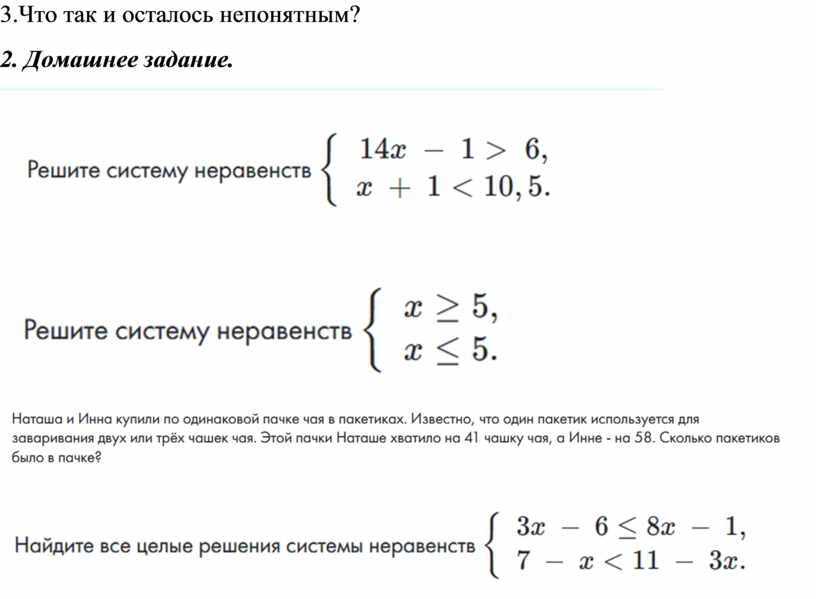 Тема: Системы линейных неравенств с одной переменной и их решение.