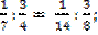 1.Определяют признак группировки, составляют равенства, объясняют своё решение. Отношения из задания 1 сгруппировать по определённому признаку и записать соответствующие равенства. 2. Высказывают свои предположения, озвучивают определение понятия. Работают в группах со словарём. Попробуем дать определение пропорции? Что означает пропорция в словаре Ожегова С.И. (работа в группах со словарем). 3. Работают в парах Составить пропорции из отношений, используя знак деления и дробную черту, прочитать полученные пропорции (на столе и записанные в тетради). 4. Находят крайние и средние члены пропорции на схеме, выделенные красным и синим цветом. 5. Определяют пропорции, из них верные и неверные, аргументируют ответ, объясняют способ определения верной пропорции.