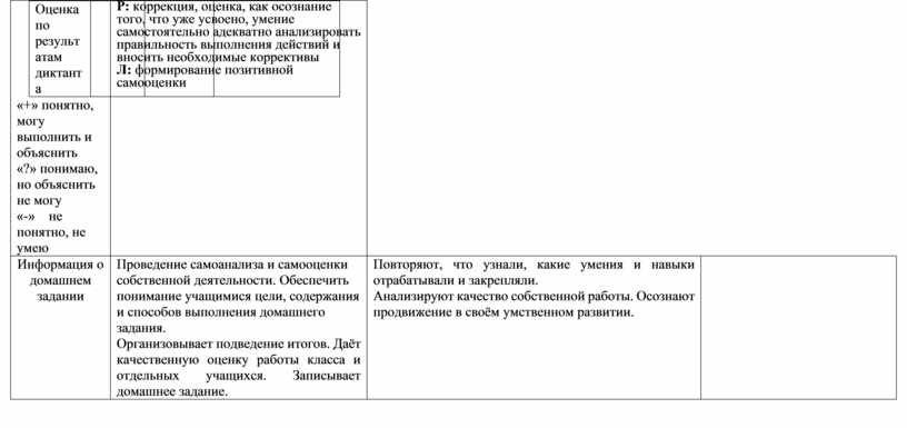 Р: коррекция, оценка, как осознание того, что уже усвоено, умение самостоятельно адекватно анализировать правильность выполнения действий и вносить необходимые коррективы Л: формирование позитивной самооценки
