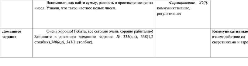 Очень хорошо! Ребята, все сегодня очень хорошо работали»! Запишите в дневники домашнее задание: № 335(а,в), 338(1,2 столбик),340(а,г), 341(1 столбик). |