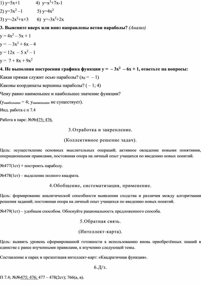 3. Выясните вверх или вниз направлены ветви параболы? (Анализ)