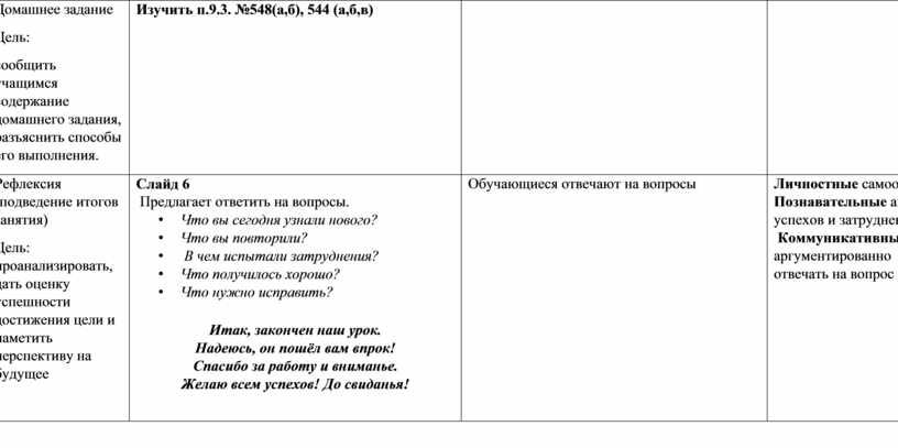 Рефлексия (подведение итогов занятия) Цель: проанализировать, дать оценку успешности достижения цели и наметить перспективу на будущее