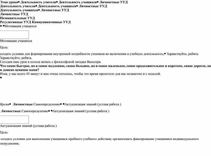 Постановка цели и задачи урока. Мотивация учебной деятельности учащихся. Цель: -уточнить индивидуальные цели будущих действий; -