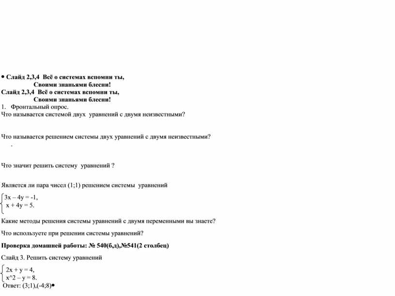 Слайд 2,3,4 Всё о системах вспомни ты, 1. Фронтальный опрос. Что называется системой двух уравнений с двумя неизвестными?