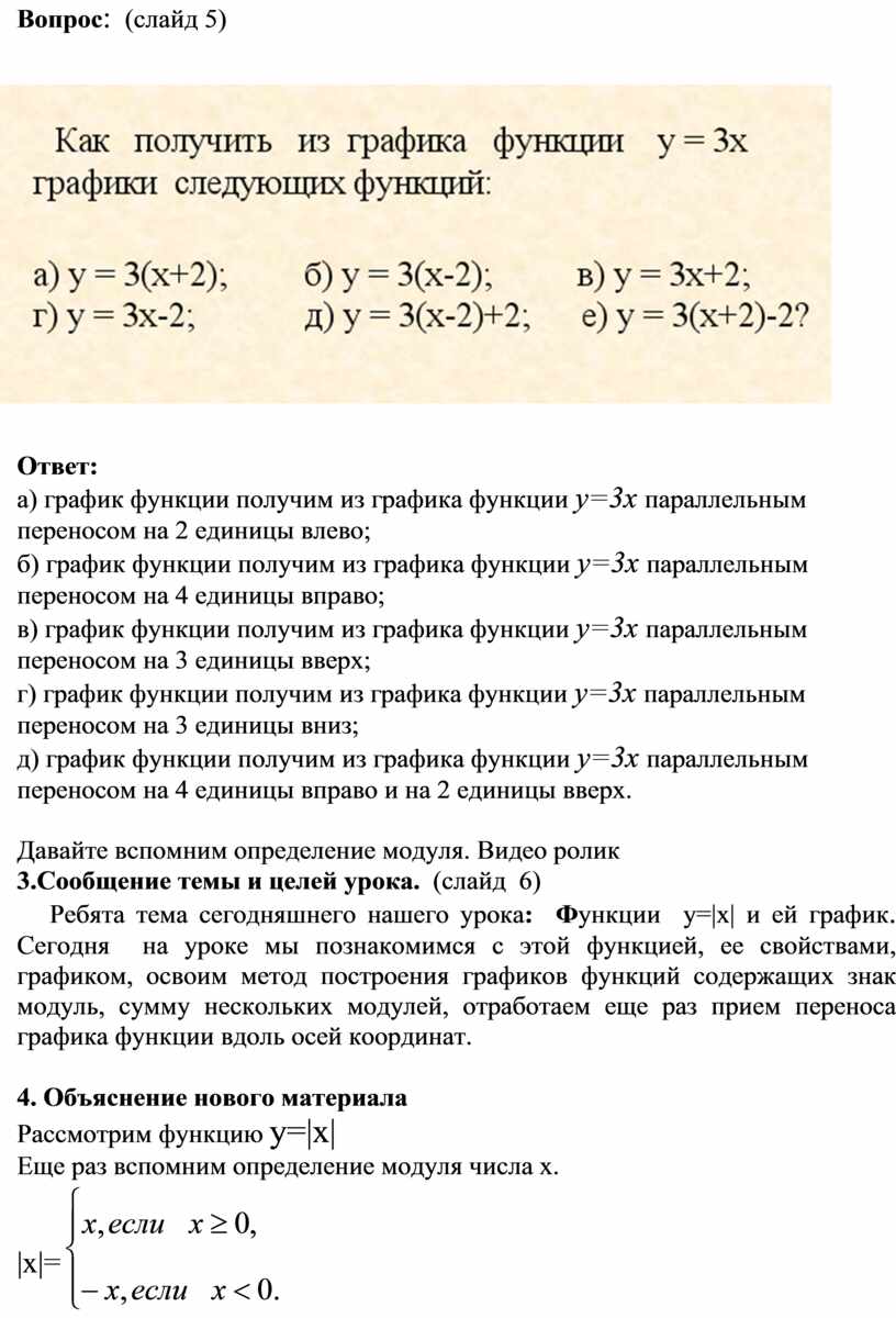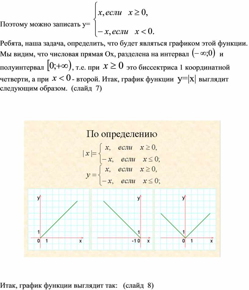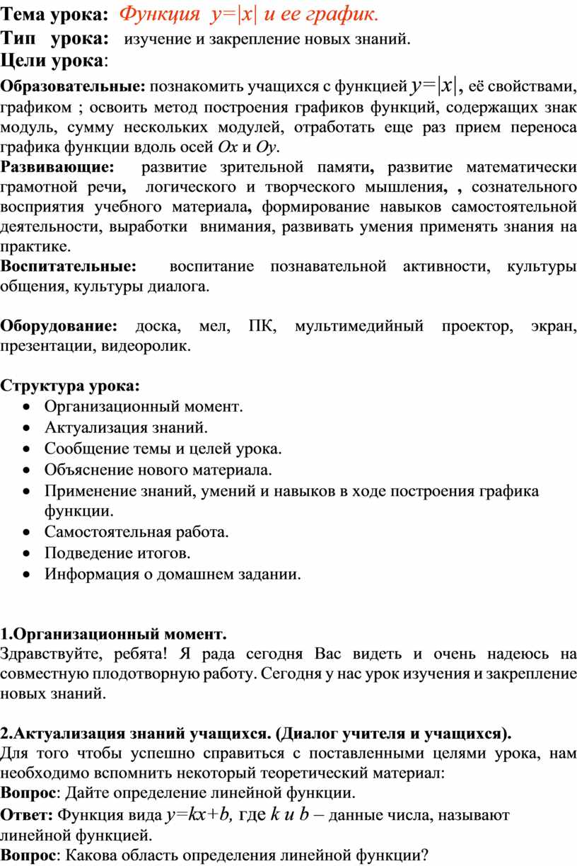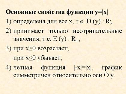 на уроке мы рассмотрели функцию у=|x|, её свойства,