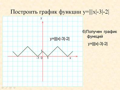 график, рассмотрели метод построения графиков вида у=|||x-a|+b|+c|, применение полученных навыков на практике.