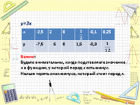 функцию, Нельзя терять знак минуса, который стоит перед «x». Проверка. Вывод: Чему научились? (определять значения аргумента и значения функции)