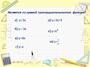 Устная работа: Является ли прямой пропорциональностью функция: а)у=2х;