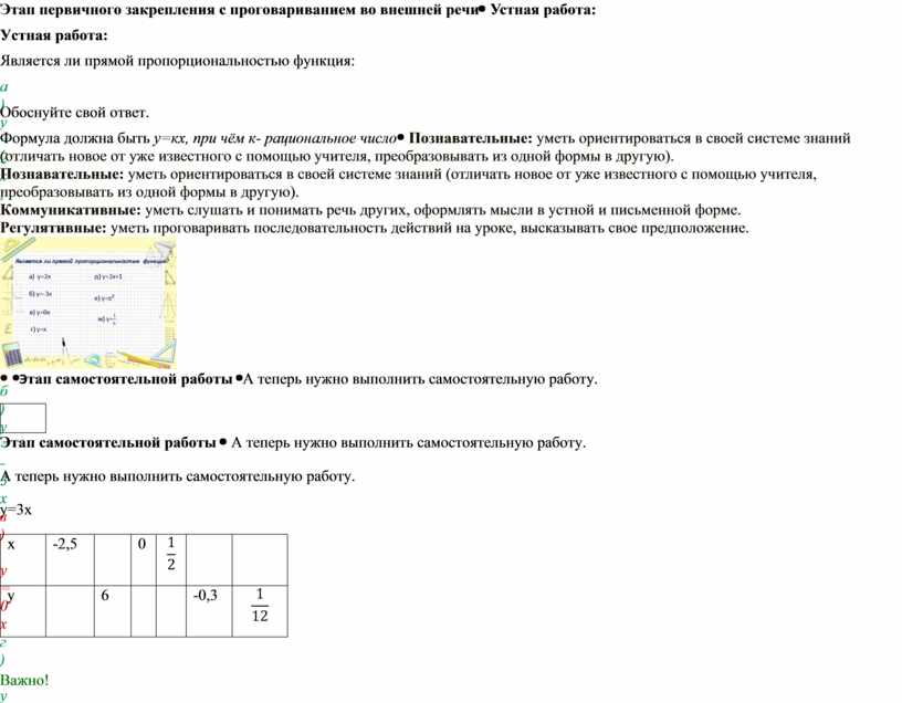 ü способствовать развитию умений формулировать определение прямой пропорциональной зависимости,