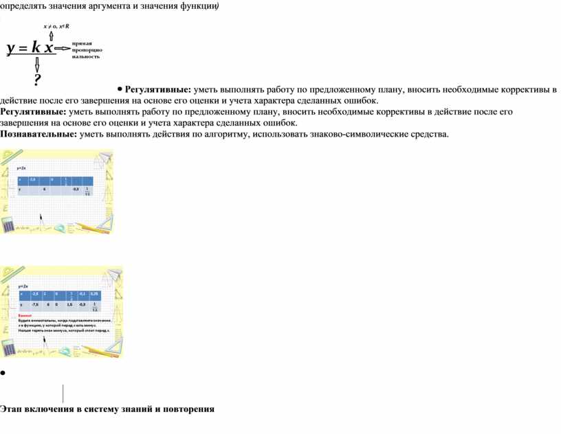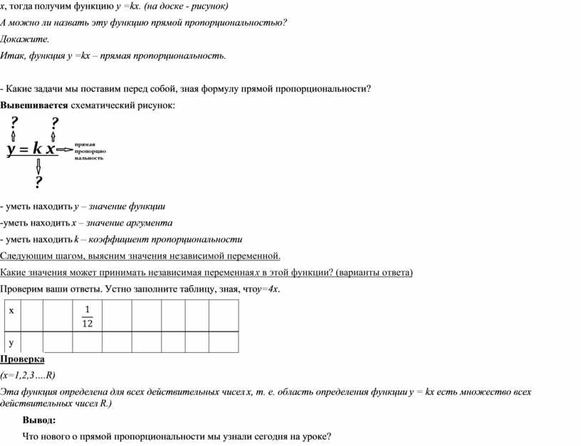 ü находить коэффициент пропорциональности, определять значения аргумента и значения функции.