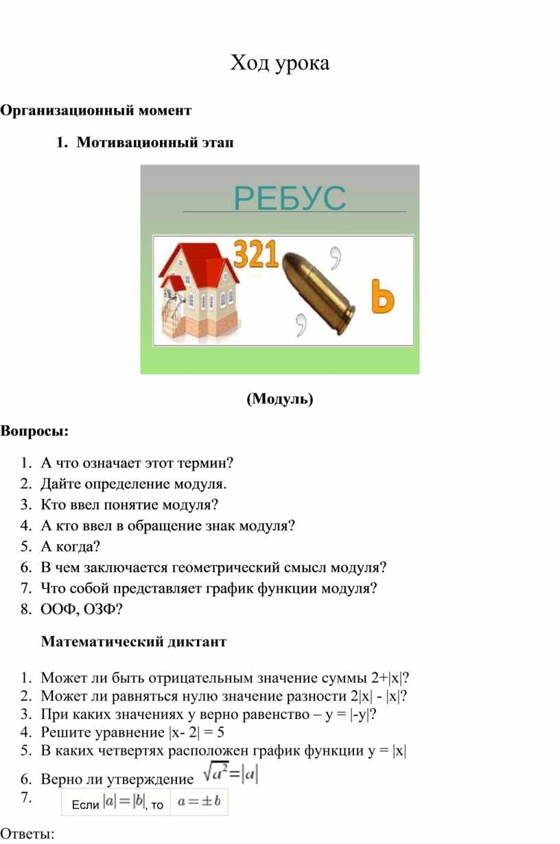 1.     Мотивационный этап (ребус, устный опрос - основные понятия и формулировки, математический диктант)