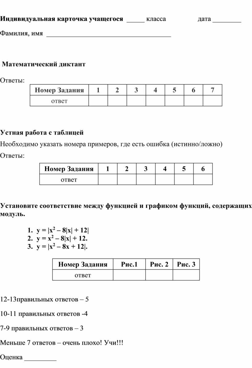 Индивидуальная карточка учащегося  _____ класса                дата ________