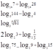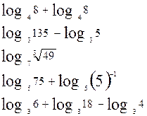 1) loga 1 2) loga a 3) logc a + logc b 4) logc a - logc b 5) logabn