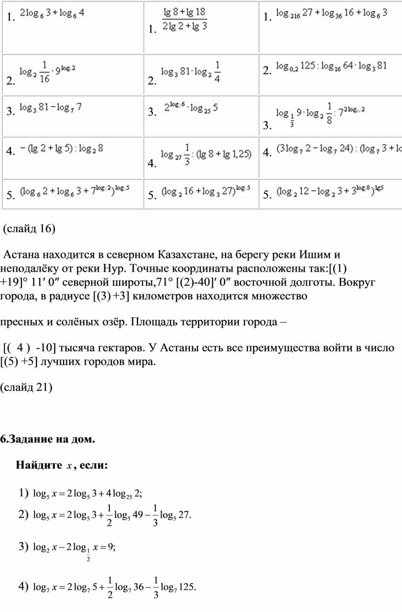 Вы дома вычисляли логарифмы и должны были справа записывать ответ.