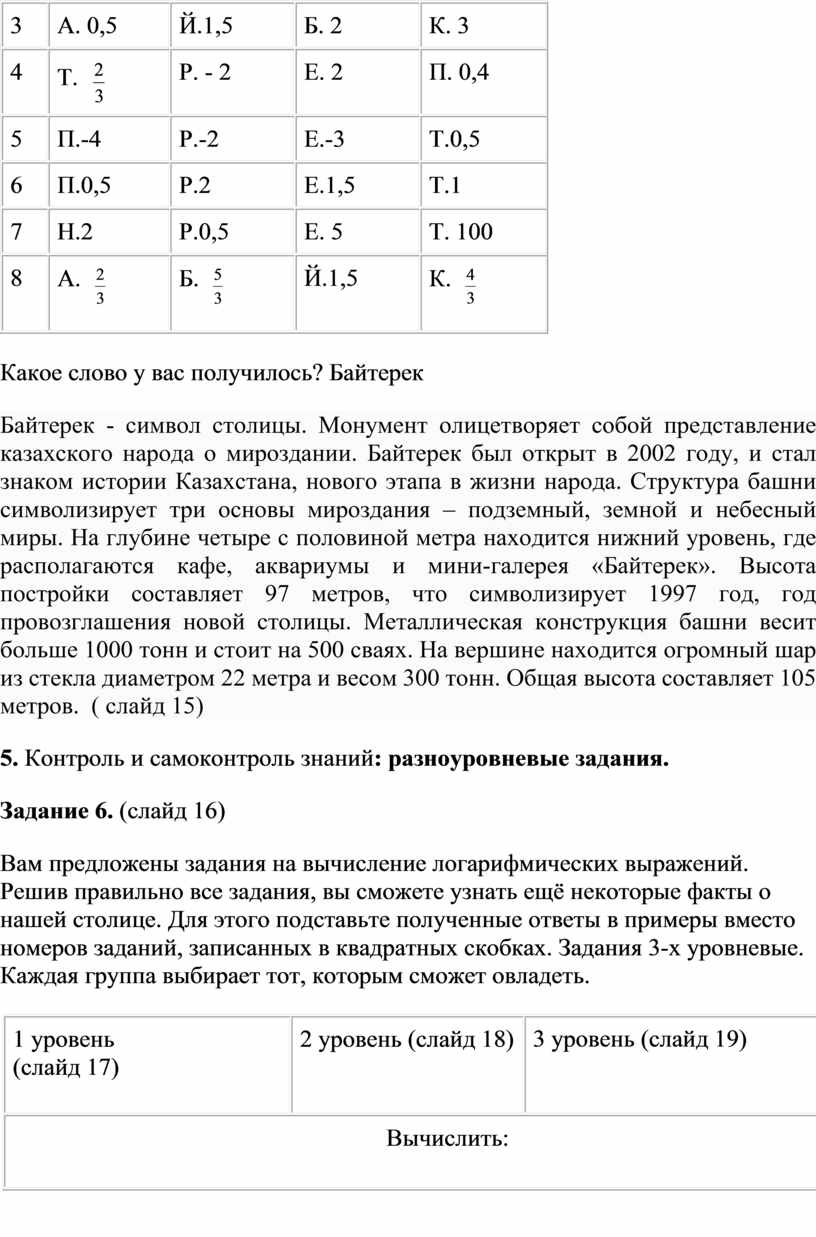 Вам предложены задания на вычисление логарифмических выражений. Решив правильно все задания, вы сможете узнать ещё некоторые факты о нашей столице. Для этого подставьте полученные ответы в примеры вместо номеров заданий, записанных в квадратных скобках. Задания 3-х уровневые. Каждая группа выбирает тот, которым сможет овладеть.