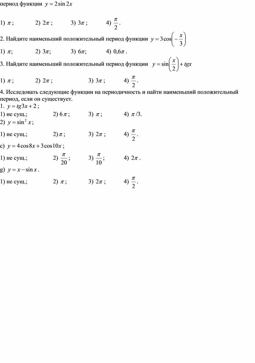 1. Найдите наименьший положительный период функции ![]()