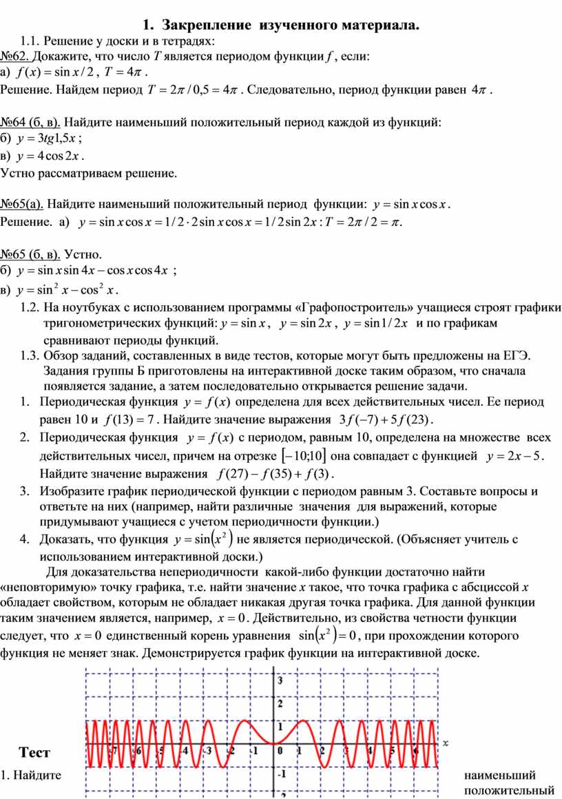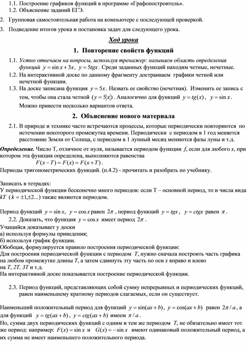 ú рассмотрение правил нахождения периодов тригонометрических функций;