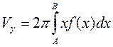 6) Объемы тел, образованных вращением криволинейной трапеции, ограниченной кривой y = f(x), осью Ox и двумя прямыми x = a и x = b вокруг осей Ох и Оу, вычисляются соответственно по формулам: