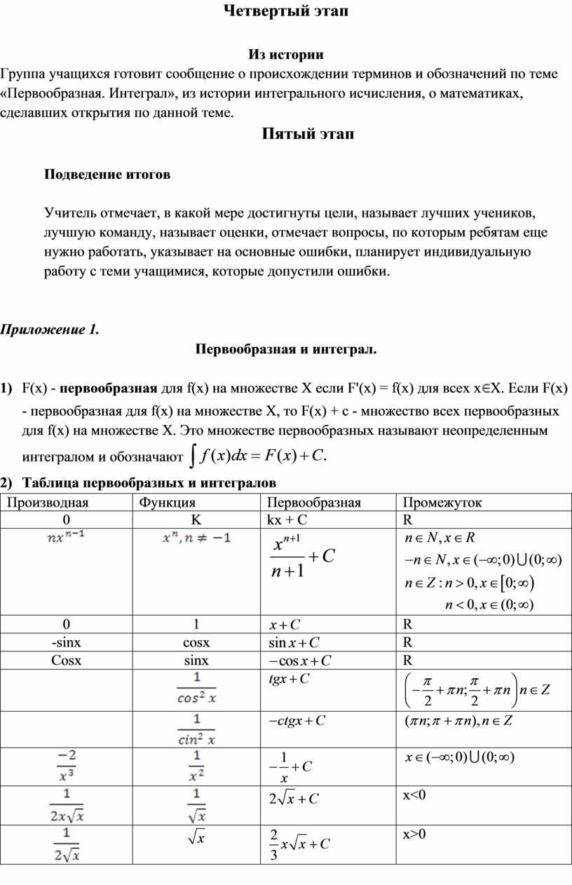 Группа учащихся готовит сообщение о происхождении терминов и обозначений по теме «Первообразная. Интеграл», из истории интегрального исчисления, о математиках, сделавших открытия по данной теме.