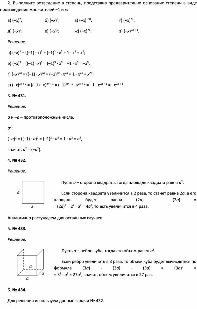 Возведение в степень произведения и степени