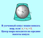 Теперь рассмотрим комбинацию усеченного конуса и шара. Всегда ли в усеченный конус можно вписать шар? (Передвигая фигуры, проводим аналогичные рассуждения)
