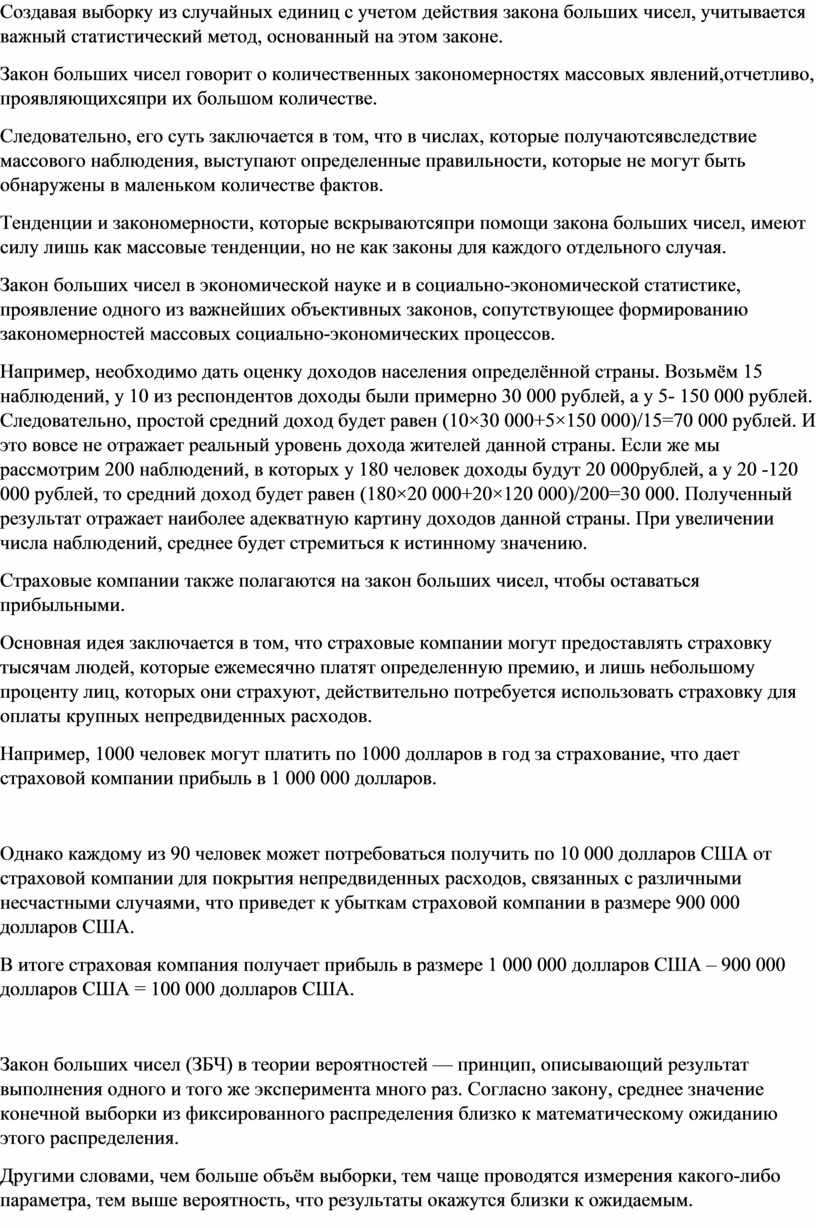 Следовательно, его суть заключается в том, что в числах, которые получаютсявследствие массового наблюдения, выступают определенные правильности, которые не могут быть обнаружены в маленьком количестве фактов.