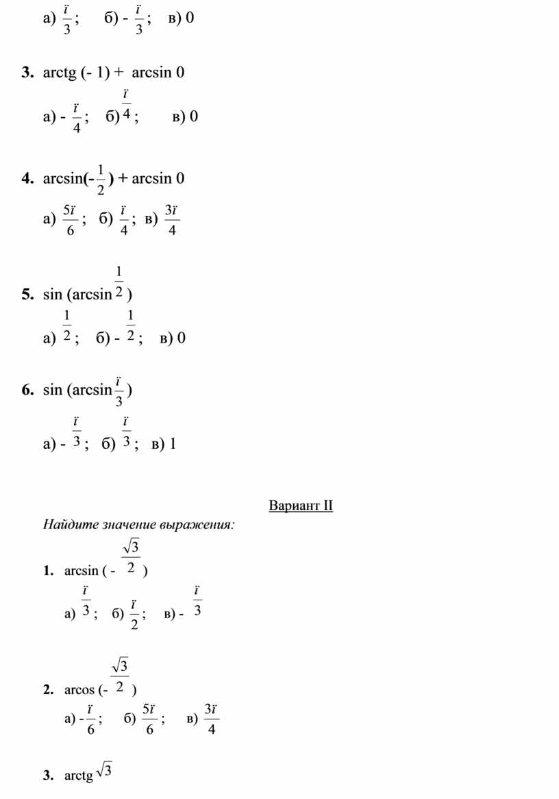 · Научить пользоваться таблицами и микрокалькулятором для вычисления значенийарксинуса, арккосинуса, арктангенса и арккотангенса.