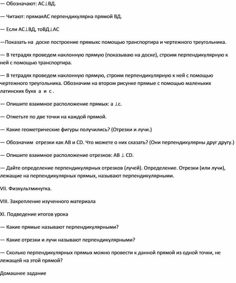 — Дайте определение перпендикулярных отрезков (лучей). Определение. Отрезки (или лучи), лежащие на перпендикулярных прямых, называют перпендикулярными.