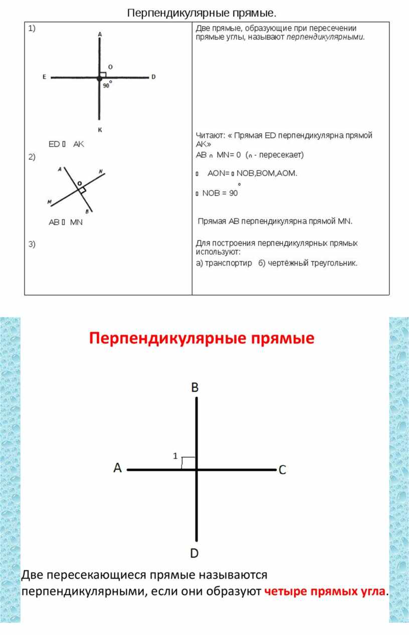 Определение. Две прямые, образующие при пересечении прямые углы, называют перпендикулярными.