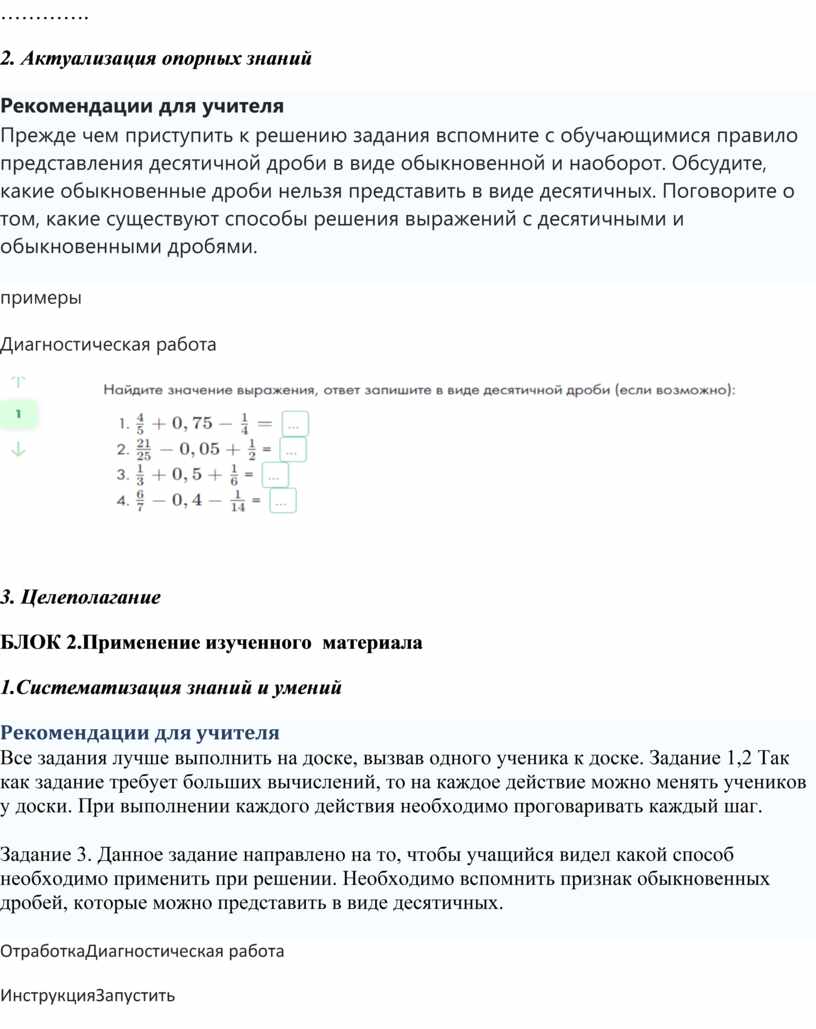 Прежде чем приступить к решению задания вспомните с обучающимися правило представления десятичной дроби в виде обыкновенной и наоборот. Обсудите, какие обыкновенные дроби нельзя представить в виде десятичных. Поговорите о том, какие существуют способы решения выражений с десятичными и обыкновенными дробями.