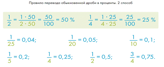 Акцентируйте внимание на том, что этот способ применим, если можно найти число, произведение которого на знаменатель дроби равно 100.
