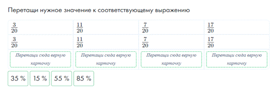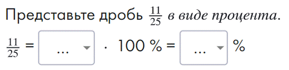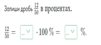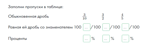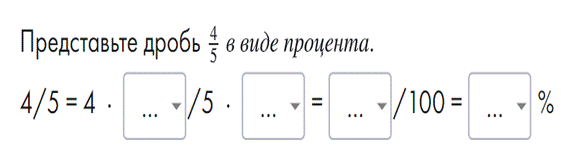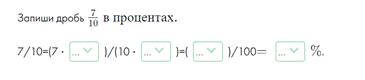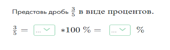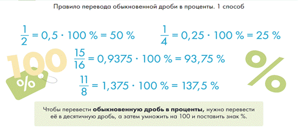 Для перевода обыкновенной дроби в проценты предложите сначала обыкновенную дробь перевести в десятичную, а затем уже умножить на 100 %.