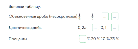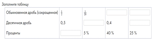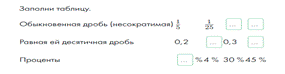 Устно с классом в фронтальном режиме переведите дроби в проценты: 1/25, 1/20, 1/10, 1/5, 1/4, 1/2, 3/4.