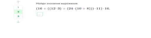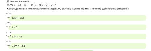 Второе задание с выбором ответа направлено на определение выбора первого шага при выполнении действий со скобками. Обратите внимание учеников на то, что в данном выражении больше одной пары скобок.