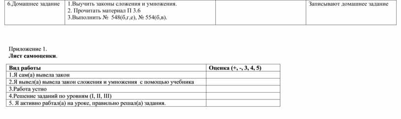 1.Выучить законы сложения и умножения. 2. Прочитать материал П 3.6 3.Выполнить № 548(б,г,е), № 554(б,в). |