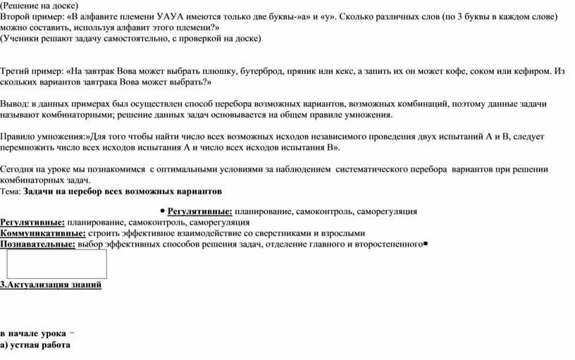 Урок по теме «Задачи на перебор всех возможных вариантов»