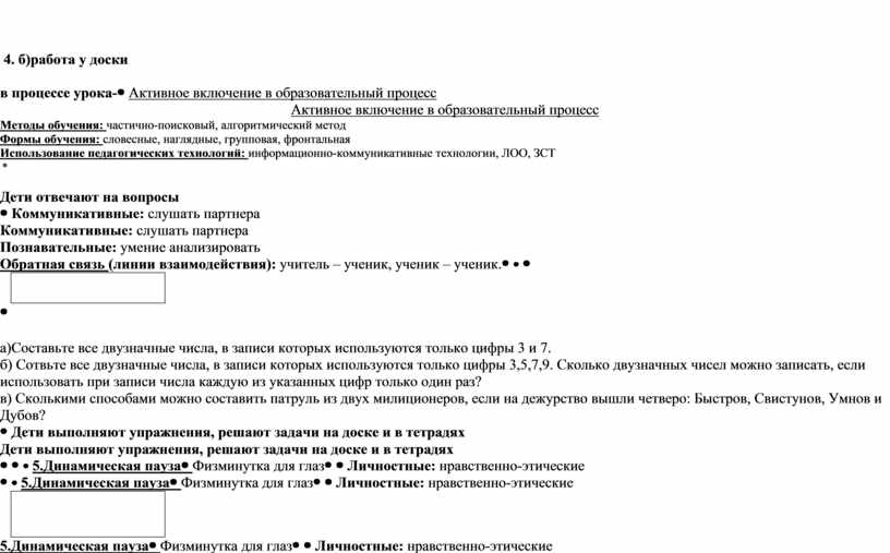 Методы обучения: математические, классификация и конкретизация изученного Формы обучения: дидактические карточки, репродуктивные Использование педагогических технологий: информационно-коммуникативные технологии