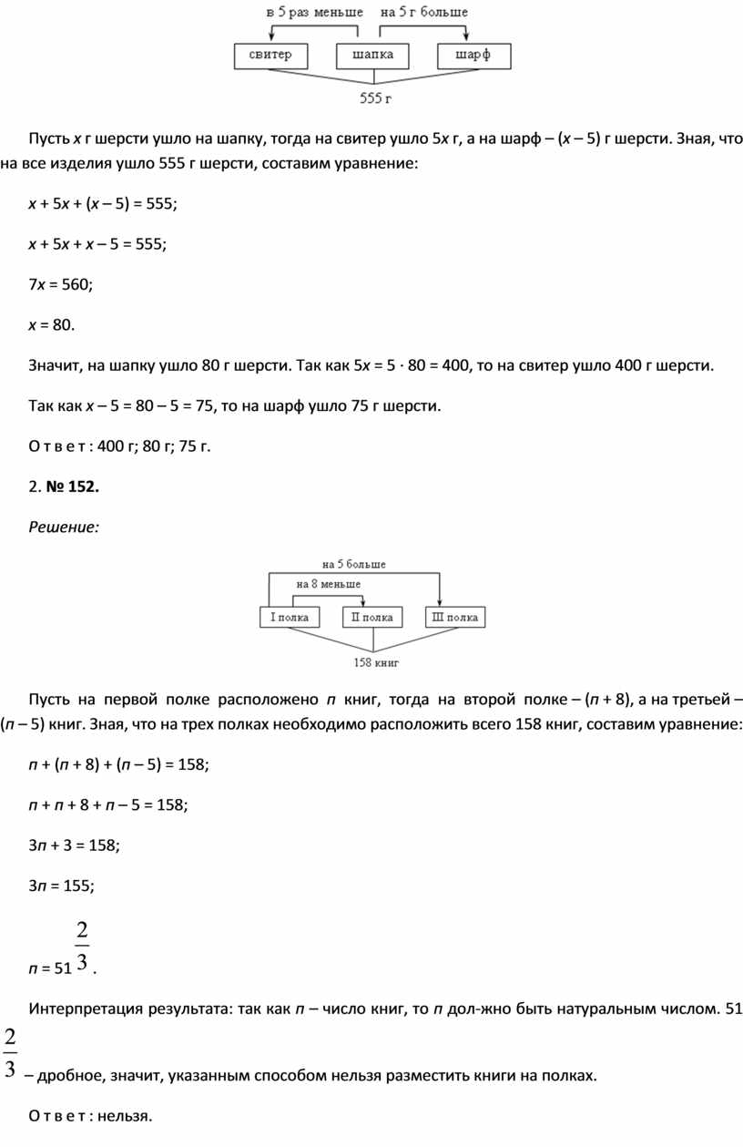Значит, на шапку ушло 80 г шерсти. Так как 5х = 5 · 80 = 400, то на свитер ушло 400 г шерсти.