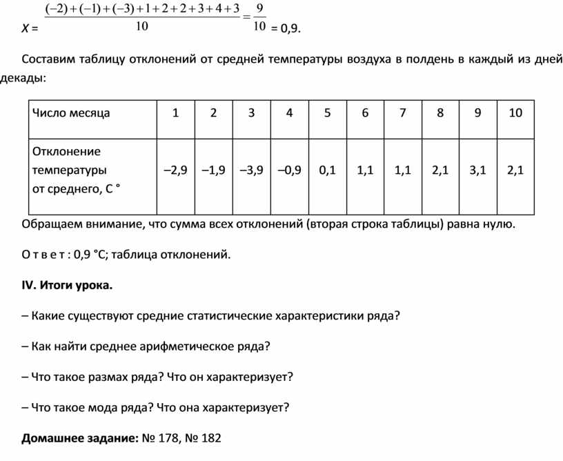 Цель: продолжить формировать умения находить среднестатистические характеристики ряда (среднее арифметическое, размах, мода) при решении различных задач.