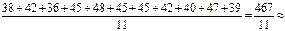Размах A = xmax – xmin = 48 – 36 = 12.